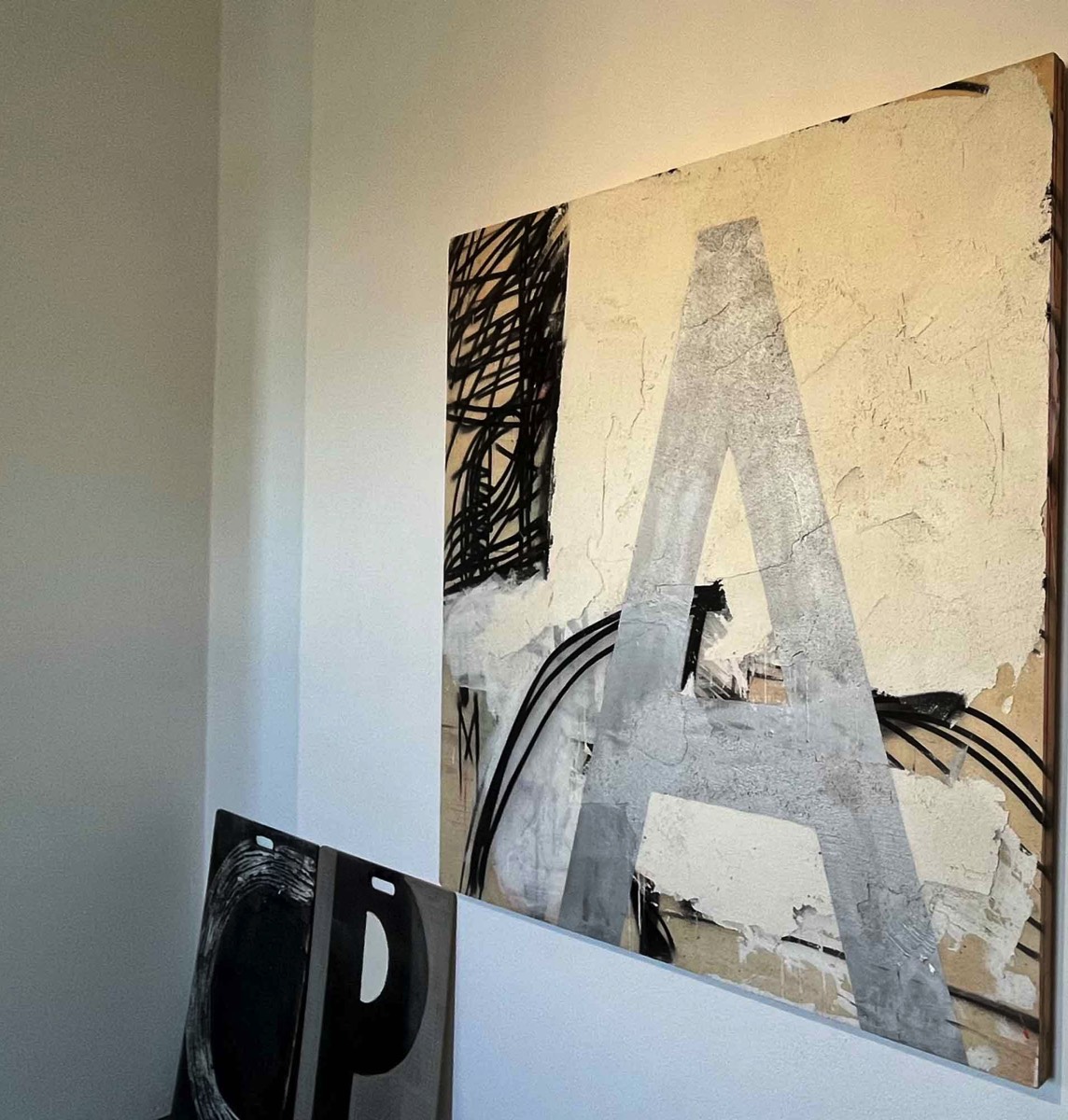 Lo studio della forma parte dalle lettere di un alfabeto elementare ed essenziale, trattate come segni a se stanti, scarne nella loro semplicità , fissate nelle linee codificate di un alfabeto conosciuto e dal sapore antico che richiama antiche civiltà, ma colte anche come rudimento di altri possibili alfabeti, come invito ad ulteriori linguaggi, a nuove forme comunicative.